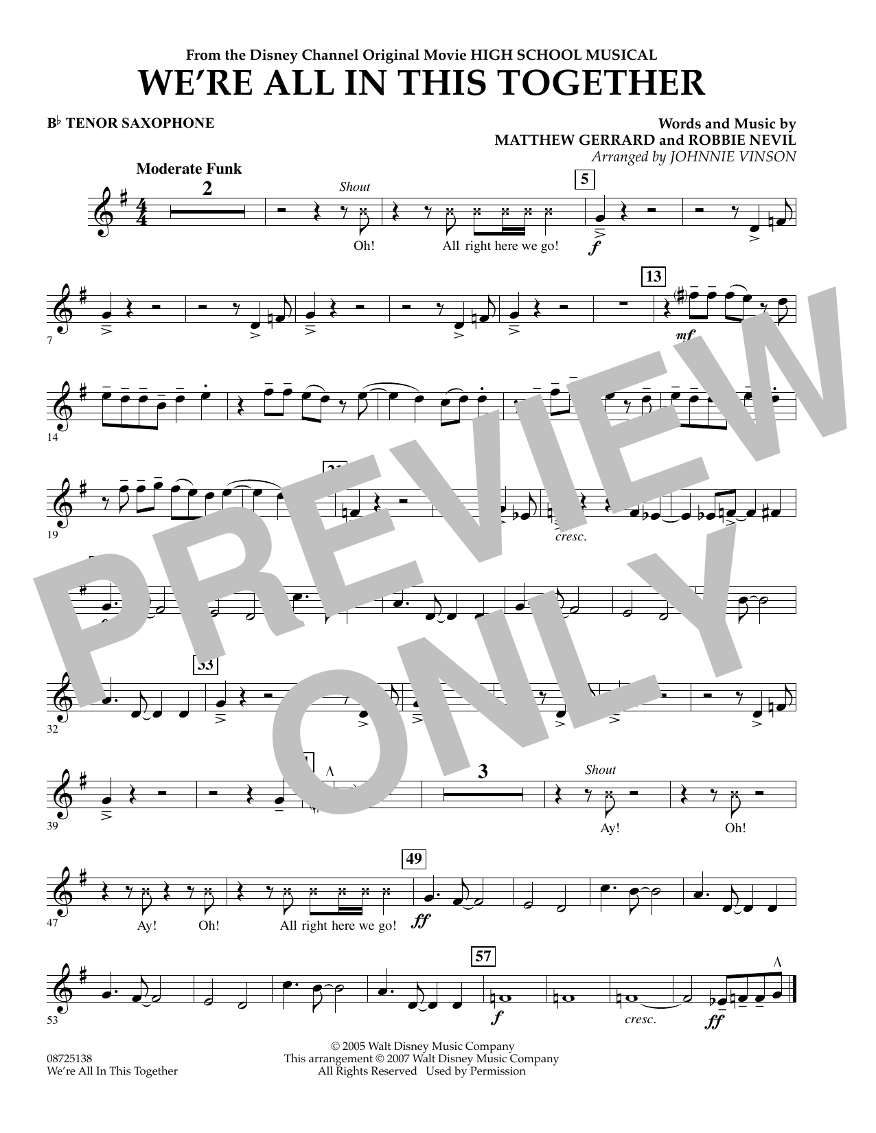 Download or print Johnnie Vinson We're All In This Together (from High School Musical) - Bb Tenor Saxophone sheet music, chords and digital score arranged for Concert Band. This Children score includes 1 page(s).