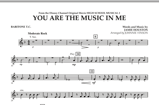 Download or print Johnnie Vinson You Are The Music In Me (from High School Musical 2) - Baritone T.C. sheet music, chords and digital score arranged for Concert Band. This Disney score includes 1 page(s).