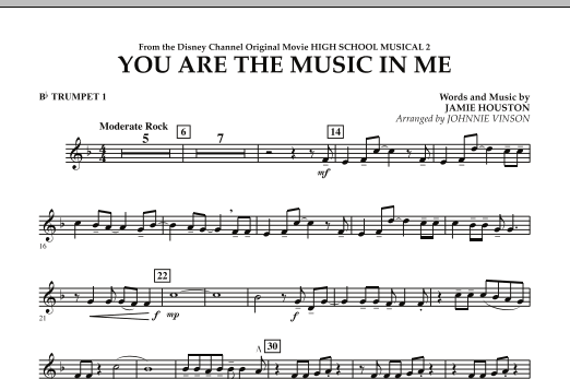 Download or print Johnnie Vinson You Are The Music In Me (from High School Musical 2) - Bb Trumpet 1 sheet music, chords and digital score arranged for Concert Band. This Disney score includes 1 page(s).