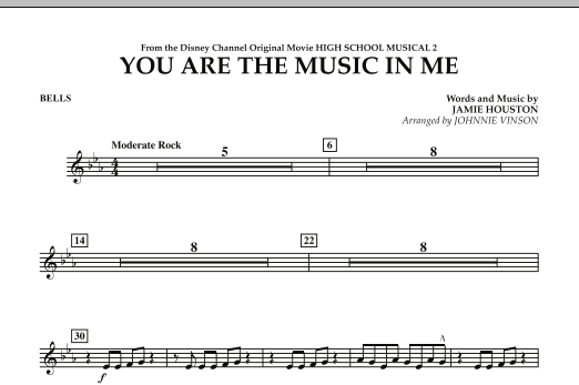 Download or print Johnnie Vinson You Are The Music In Me (from High School Musical 2) - Bells sheet music, chords and digital score arranged for Concert Band. This Disney score includes 1 page(s).