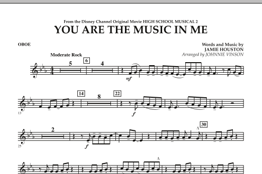 Download or print Johnnie Vinson You Are The Music In Me (from High School Musical 2) - Oboe sheet music, chords and digital score arranged for Concert Band. This Disney score includes 1 page(s).