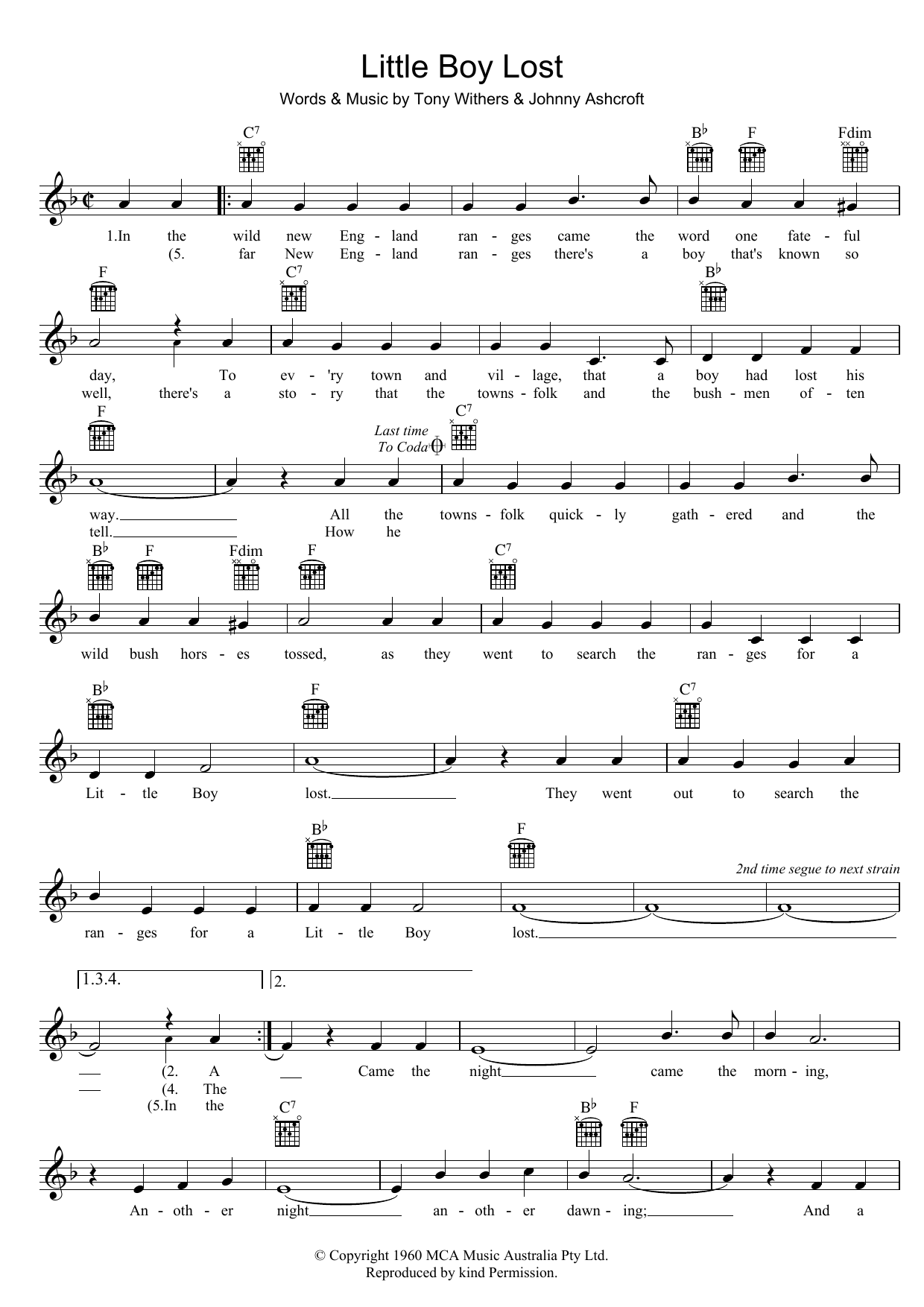 Download or print Johnny Ashcroft Little Boy Lost sheet music, chords and digital score arranged for Lead Sheet / Fake Book. This Film/TV score includes 2 page(s).