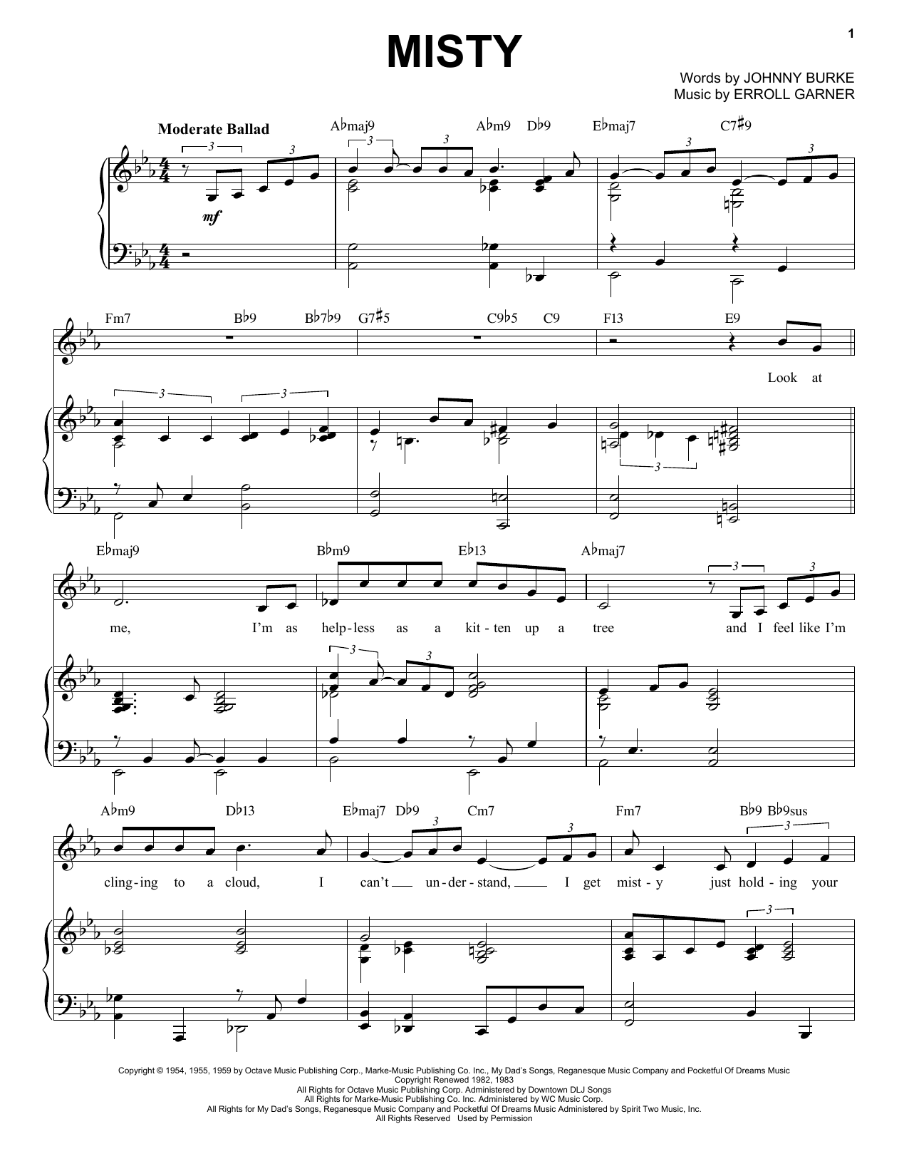 Download or print Johnny Burke and Erroll Garner Misty [Jazz version] (arr. Brent Edstrom) sheet music, chords and digital score arranged for Piano & Vocal. This Jazz score includes 5 page(s).