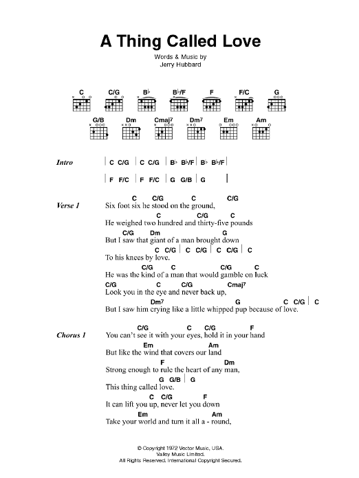 Download or print Johnny Cash A Thing Called Love sheet music, chords and digital score arranged for Guitar Chords/Lyrics. This Country score includes 2 page(s).