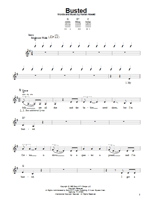 Download or print Johnny Cash Busted sheet music, chords and digital score arranged for ChordBuddy. This Country score includes 1 page(s).