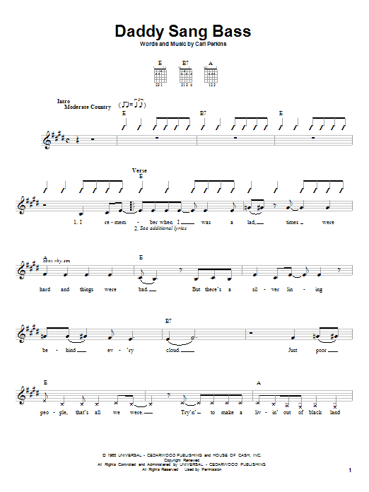 Download or print Johnny Cash Daddy Sang Bass sheet music, chords and digital score arranged for Super Easy Piano. This Country score includes 2 page(s).