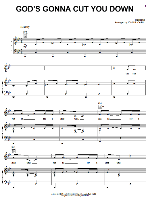Download or print Johnny Cash God's Gonna Cut You Down sheet music, chords and digital score arranged for Guitar Chords/Lyrics. This Country score includes 3 page(s).