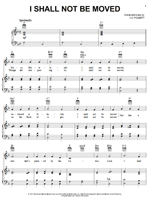 Quick facts I Shall Not Be Moved about digital sheet music