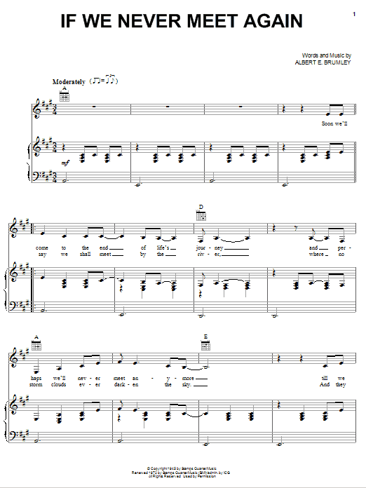 Download or print Johnny Cash If We Never Meet Again sheet music, chords and digital score arranged for Piano, Vocal & Guitar Chords (Right-Hand Melody). This Country score includes 4 page(s).