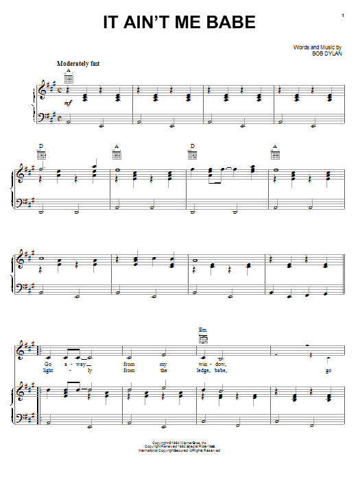 Quick facts It Ain't Me Babe about digital sheet music