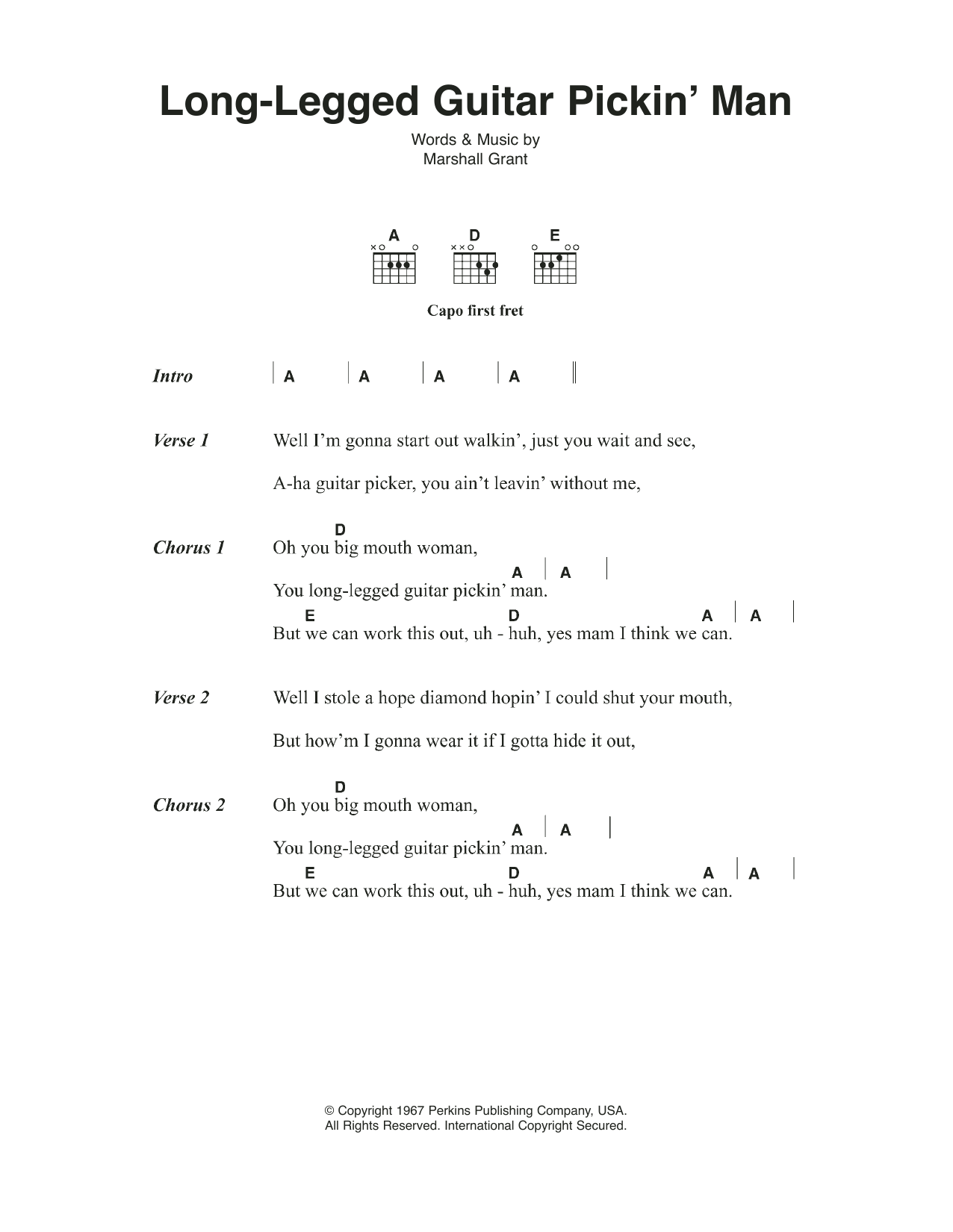 Download or print Johnny Cash Long Legged Guitar Pickin' Man sheet music, chords and digital score arranged for Guitar Chords/Lyrics. This Country score includes 2 page(s).