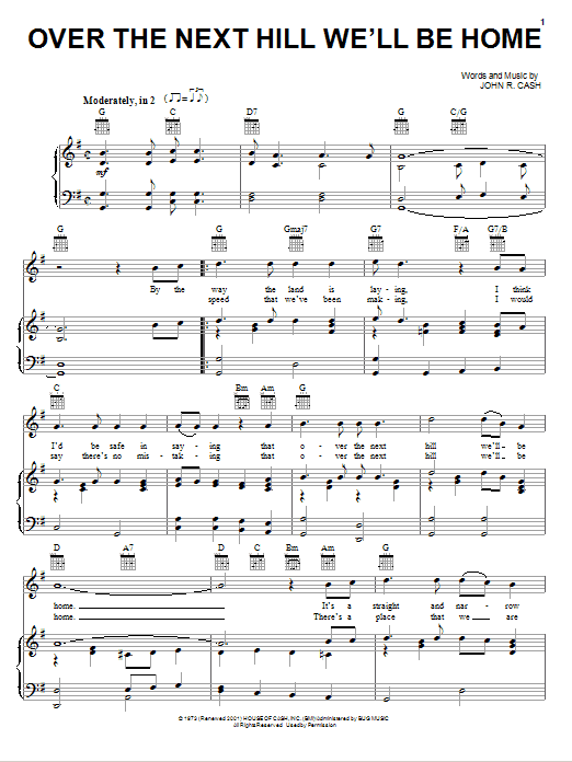 Download or print Johnny Cash Over The Next Hill We'll Be Home sheet music, chords and digital score arranged for Piano, Vocal & Guitar Chords (Right-Hand Melody). This Country score includes 3 page(s).