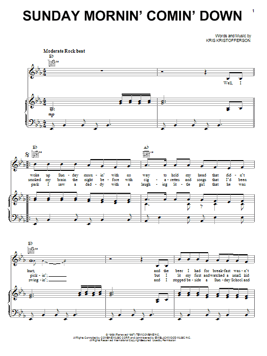 Quick facts Sunday Mornin' Comin' Down about digital sheet music