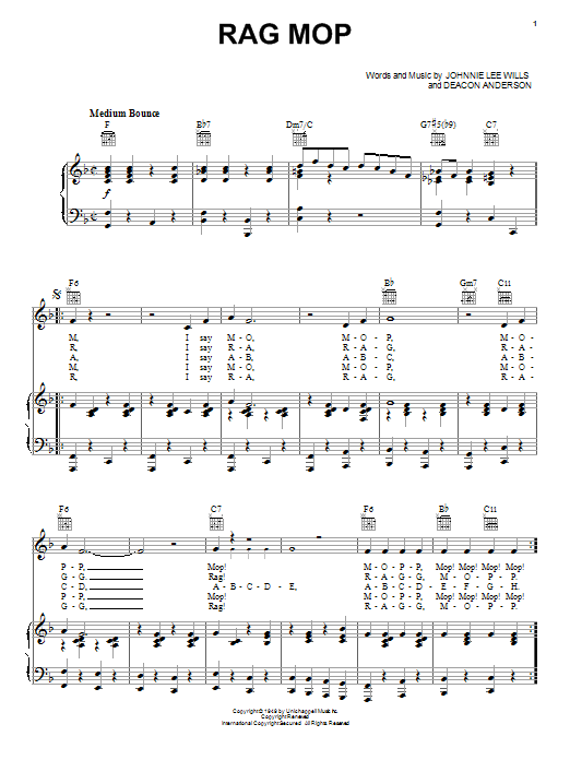 Download or print Johnny Lee Wills Rag Mop sheet music, chords and digital score arranged for Piano, Vocal & Guitar Chords (Right-Hand Melody). This Country score includes 2 page(s).