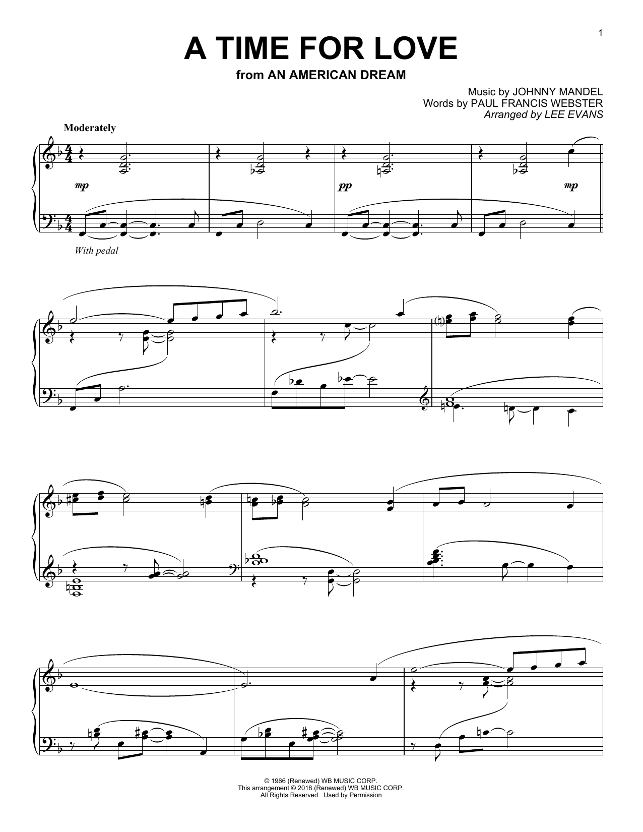 Download or print Johnny Mandel A Time For Love (from An American Dream) (arr. Lee Evans) sheet music, chords and digital score arranged for Piano Solo. This Jazz score includes 4 page(s).