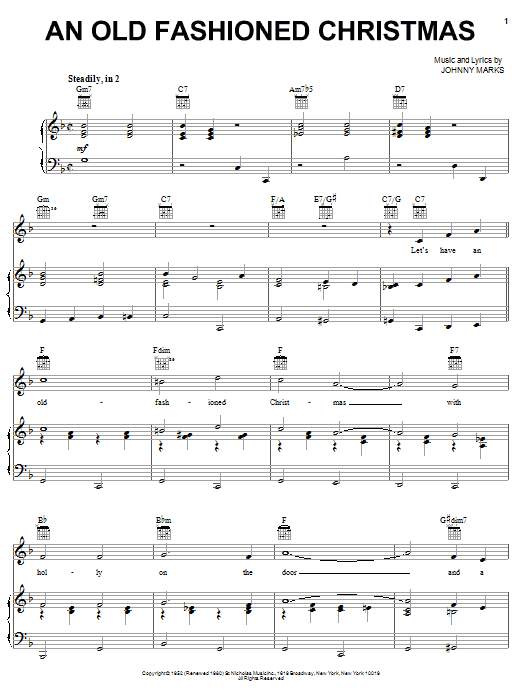 Download or print Johnny Marks An Old Fashioned Christmas sheet music, chords and digital score arranged for Piano, Vocal & Guitar Chords (Right-Hand Melody). This Christmas score includes 3 page(s).