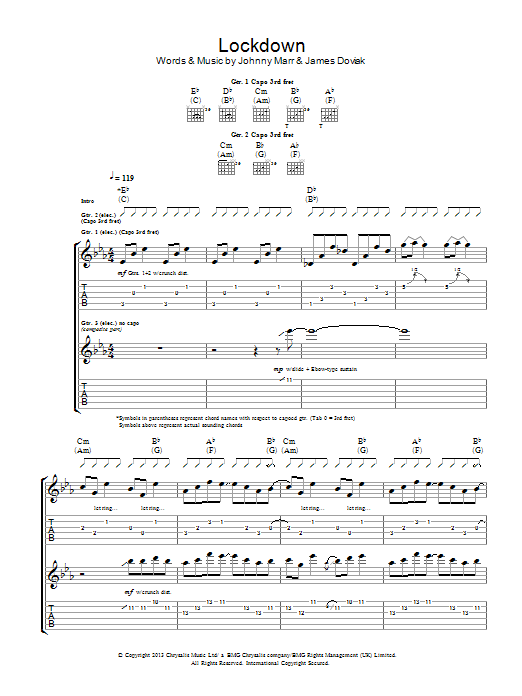 Download or print Johnny Marr Lockdown sheet music, chords and digital score arranged for Choir. This Rock score includes 10 page(s).