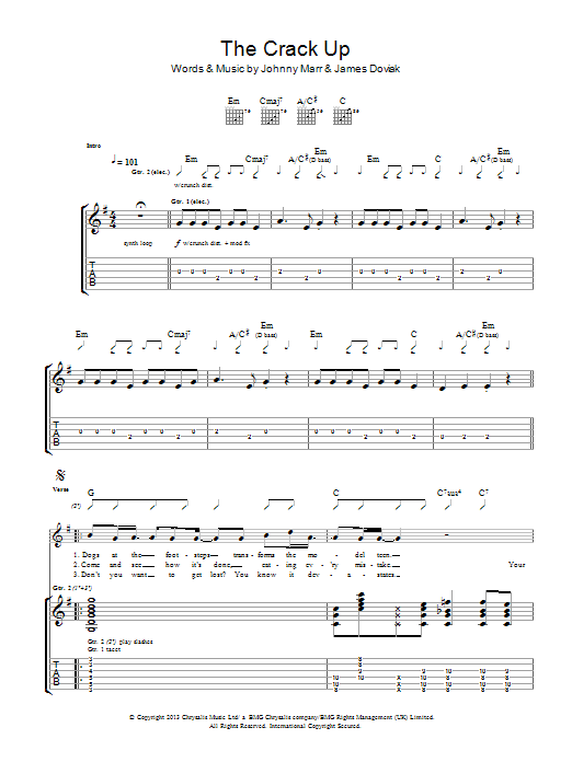 Download or print Johnny Marr The Crack Up sheet music, chords and digital score arranged for Guitar Tab. This Rock score includes 5 page(s).