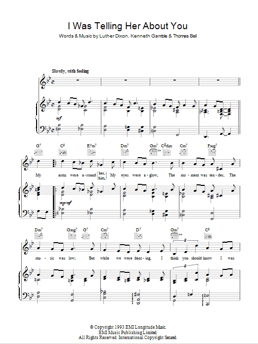 Download or print Johnny Mathis I Was Telling Her About You sheet music, chords and digital score arranged for Piano, Vocal & Guitar Chords. This Standards score includes 3 page(s).