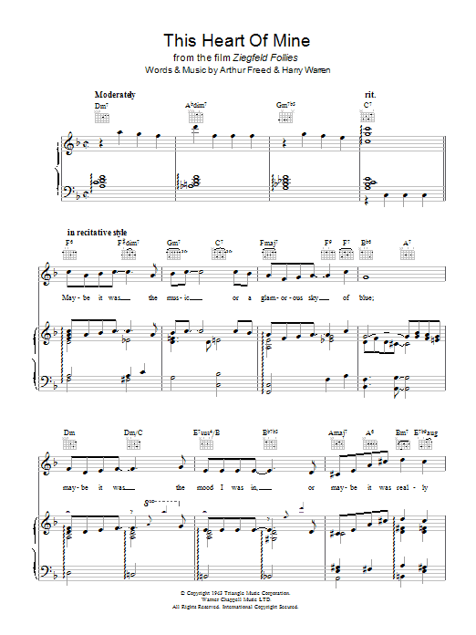 Quick facts This Heart Of Mine (from Ziegfried Follies) about digital sheet music