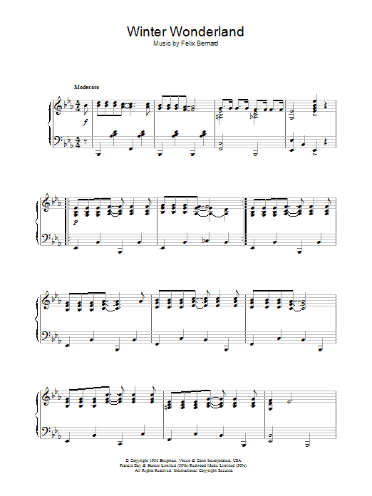 Download or print Johnny Mathis Winter Wonderland sheet music, chords and digital score arranged for Piano Solo. This Christmas score includes 4 page(s).