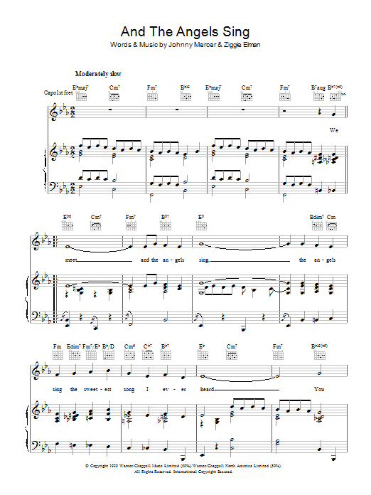 Download or print Johnny Mercer And The Angels Sing sheet music, chords and digital score arranged for Piano, Vocal & Guitar Chords. This Jazz score includes 5 page(s).