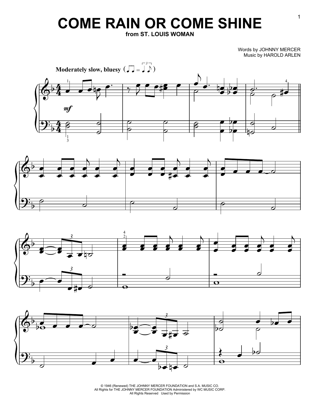 Download or print Johnny Mercer Come Rain or Come Shine sheet music, chords and digital score arranged for Solo Guitar. This Jazz score includes 2 page(s).