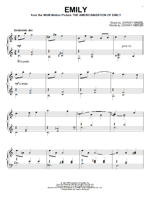 Download or print Johnny Mercer Emily sheet music, chords and digital score arranged for Easy Guitar Tab. This Jazz score includes 2 page(s).