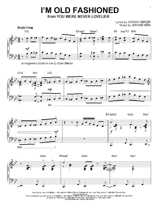 Download or print Johnny Mercer I'm Old Fashioned [Jazz version] (arr. Brent Edstrom) sheet music, chords and digital score arranged for Piano Solo. This Standards score includes 5 page(s).