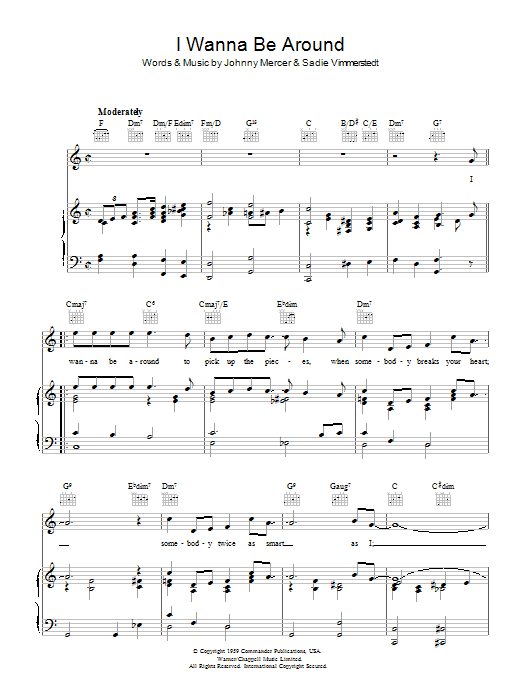 Download or print Johnny Mercer I Wanna Be Around sheet music, chords and digital score arranged for Real Book – Melody & Chords. This Jazz score includes 1 page(s).