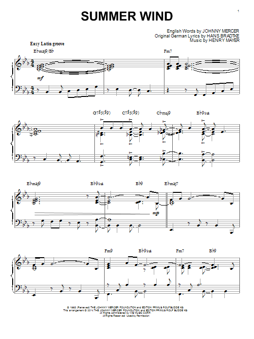 Download or print Johnny Mercer Summer Wind [Jazz version] (arr. Brent Edstrom) sheet music, chords and digital score arranged for Piano Solo. This Jazz score includes 4 page(s).