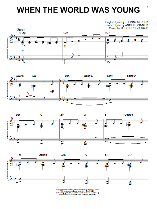 Download or print Johnny Mercer When The World Was Young [Jazz version] (arr. Brent Edstrom) sheet music, chords and digital score arranged for Piano Solo. This Jazz score includes 4 page(s).