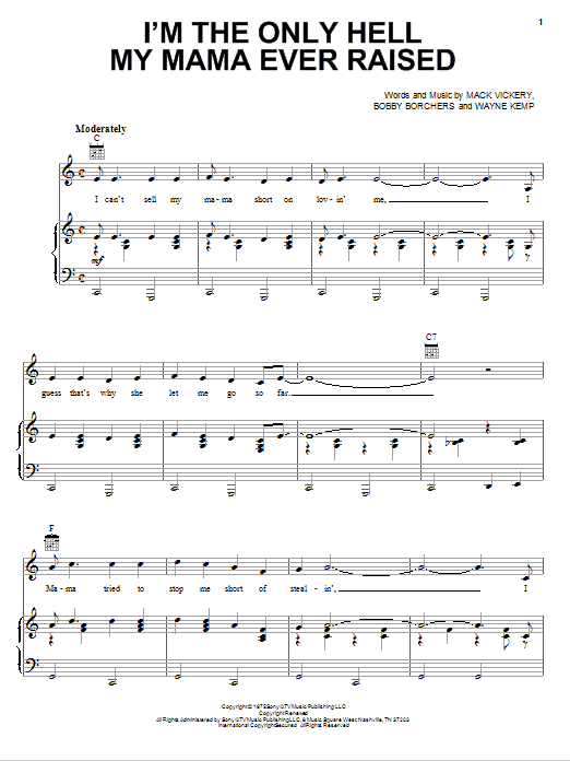 Download or print Johnny Paycheck I'm The Only Hell My Mama Ever Raised sheet music, chords and digital score arranged for Piano, Vocal & Guitar Chords (Right-Hand Melody). This Country score includes 6 page(s).