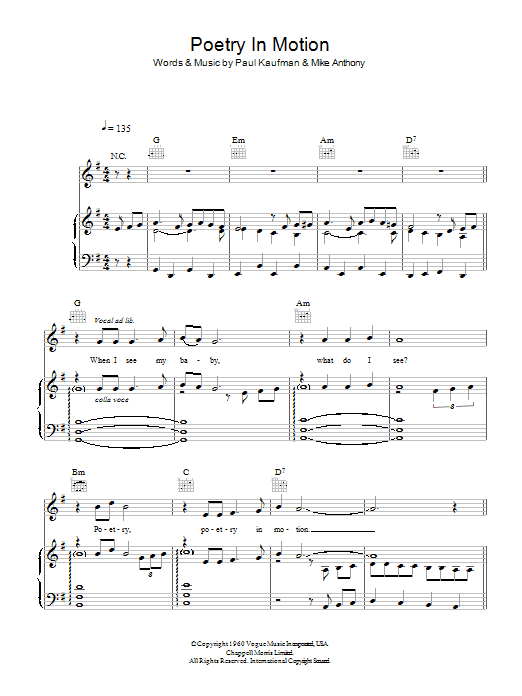 Download or print J Tillotson Poetry In Motion sheet music, chords and digital score arranged for Piano, Vocal & Guitar Chords. This Pop score includes 3 page(s).