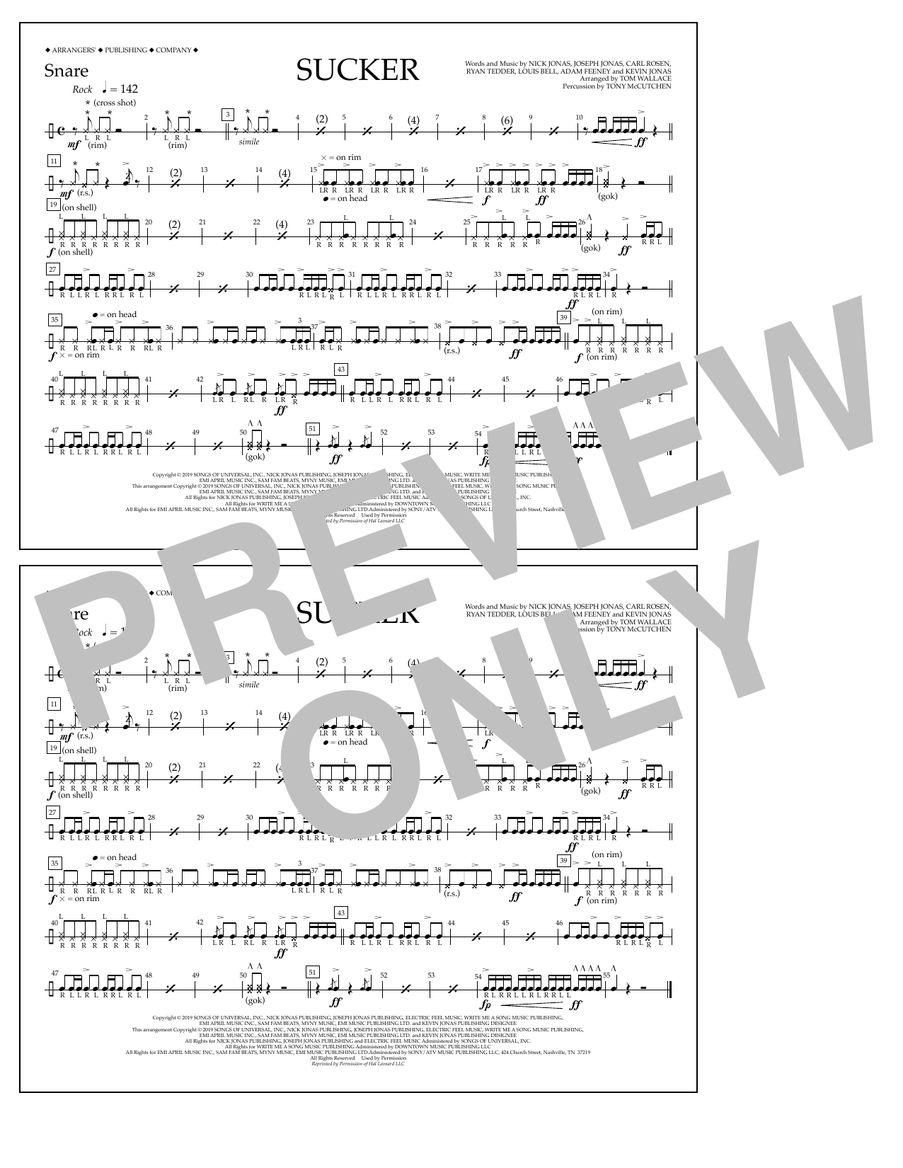 Quick facts Sucker (arr. Tom Wallace) - Snare about digital sheet music