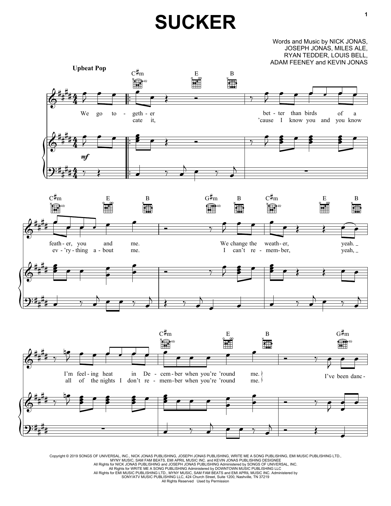 Download or print Jonas Brothers Sucker sheet music, chords and digital score arranged for Mallet Solo. This Pop score includes 1 page(s).