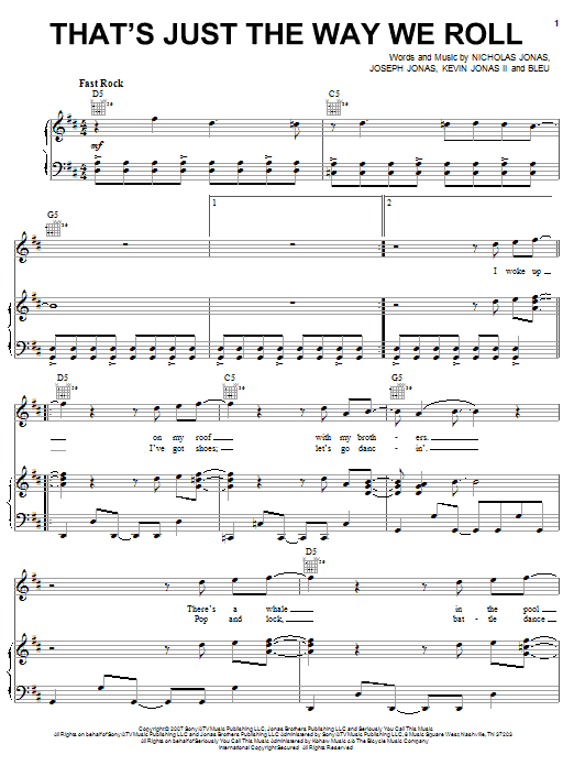 Download or print Jonas Brothers That's Just The Way We Roll sheet music, chords and digital score arranged for Easy Piano. This Pop score includes 5 page(s).