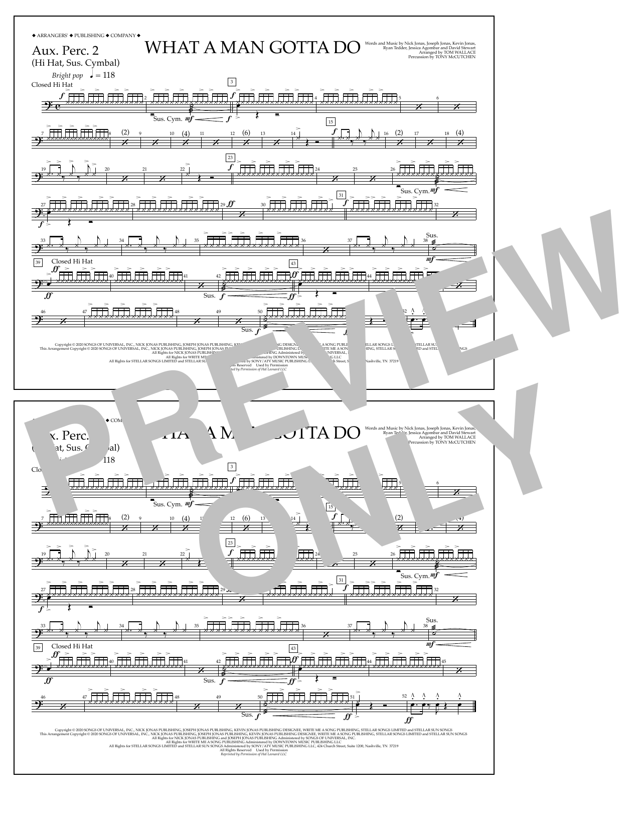 Quick facts What a Man Gotta Do (arr. Tom Wallace) - Aux. Perc. 2 about digital sheet music