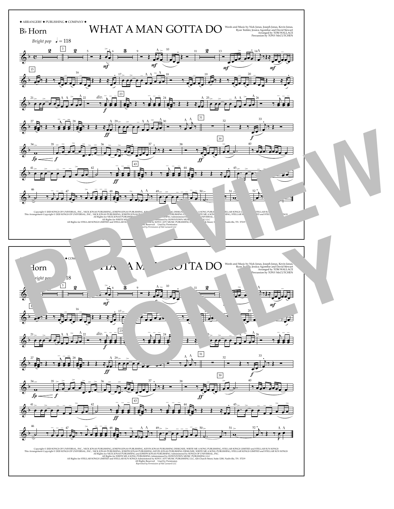 Quick facts What a Man Gotta Do (arr. Tom Wallace) - Bb Horn about digital sheet music