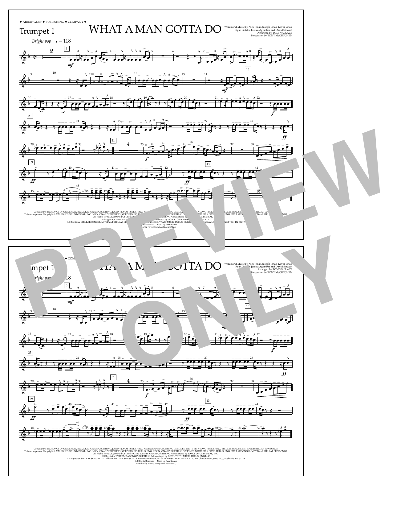 Download or print Jonas Brothers What a Man Gotta Do (arr. Tom Wallace) - Trumpet 1 sheet music, chords and digital score arranged for Marching Band. This Pop score includes 1 page(s).