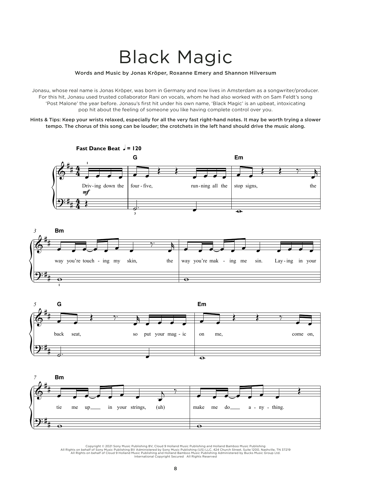 Download or print Jonasu Black Magic sheet music, chords and digital score arranged for Really Easy Piano. This Pop score includes 4 page(s).