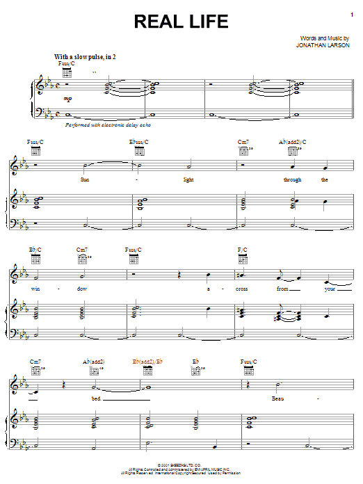 Download or print Jonathan Larson Real Life (from tick, tick... BOOM!) sheet music, chords and digital score arranged for Piano & Vocal. This Musical/Show score includes 7 page(s).