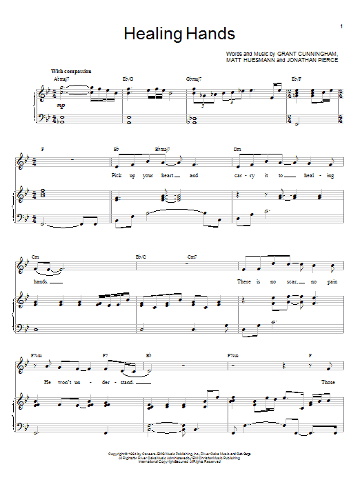Download or print Jonathan Pierce Healing Hands sheet music, chords and digital score arranged for Piano, Vocal & Guitar Chords (Right-Hand Melody). This Christian score includes 7 page(s).