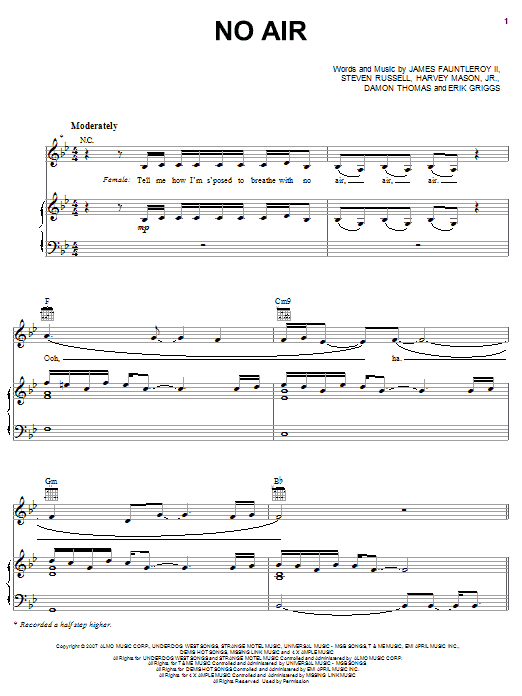 Download or print Jordin Sparks with Chris Brown No Air sheet music, chords and digital score arranged for Easy Piano. This Film/TV score includes 5 page(s).