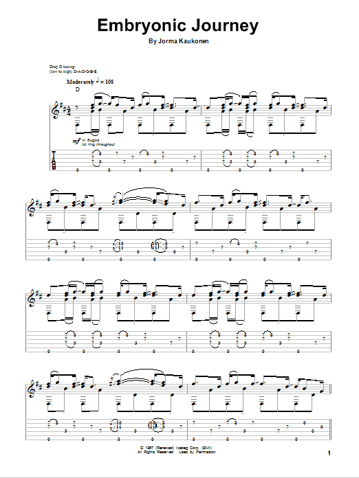 Download or print Jorma Kaukonen Embryonic Journey sheet music, chords and digital score arranged for Guitar Tab (Single Guitar). This Pop score includes 4 page(s).