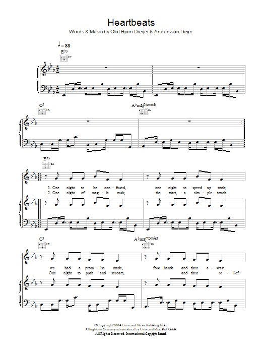 Download or print Jose Gonzalez Heartbeats sheet music, chords and digital score arranged for Guitar Tab. This Folk score includes 4 page(s).