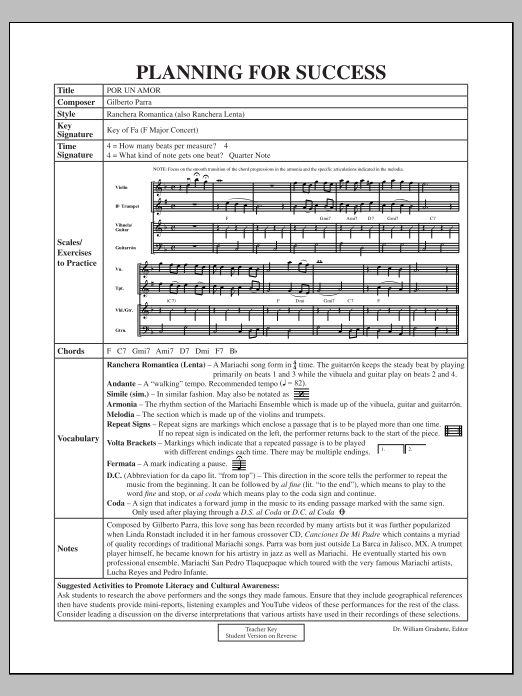 Quick facts Por Un Amor - Planning for Success about digital sheet music