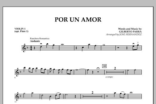 Download or print Jose Hernandez Por Un Amor - Violin 1 sheet music, chords and digital score arranged for Concert Band. This Concert score includes 1 page(s).