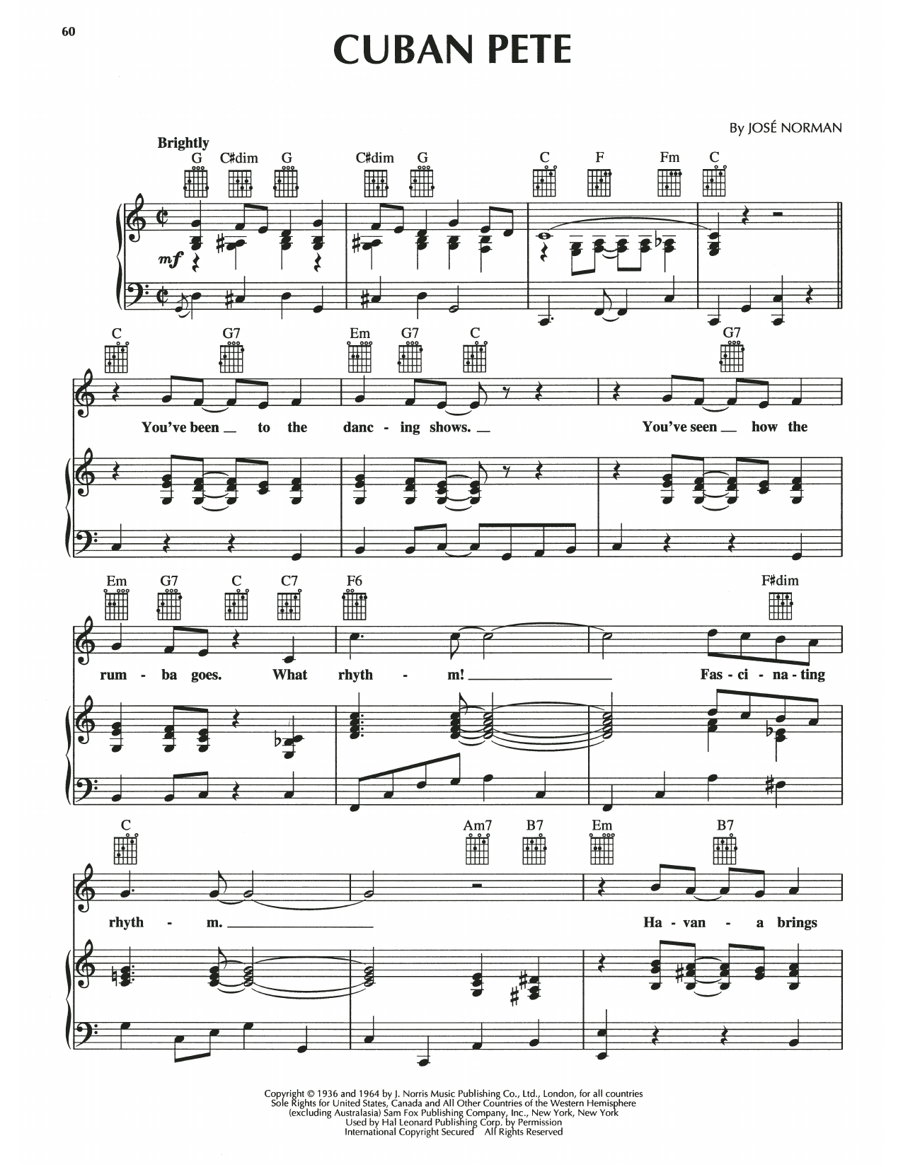 Download or print Jose Norman Cuban Pete sheet music, chords and digital score arranged for Piano, Vocal & Guitar Chords (Right-Hand Melody). This Pop score includes 5 page(s).