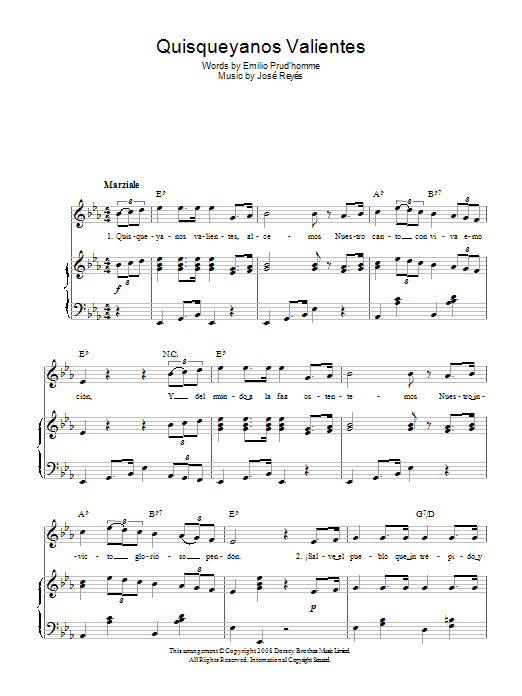 Download or print Jose Reyes Quisqueyanos Valientes (Dominican Republic National Anthem) sheet music, chords and digital score arranged for Piano, Vocal & Guitar Chords. This Inspirational score includes 3 page(s).